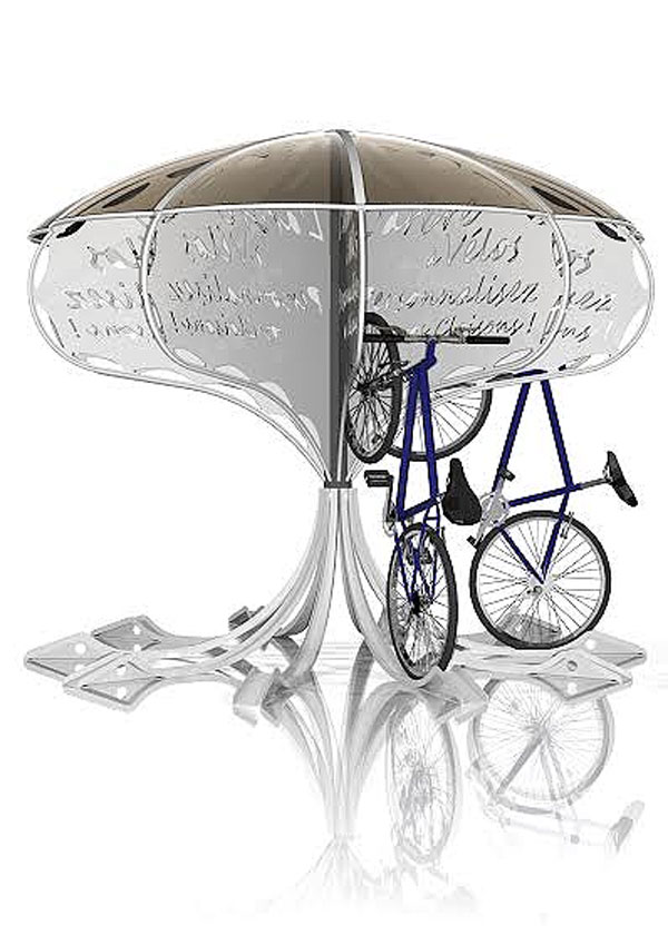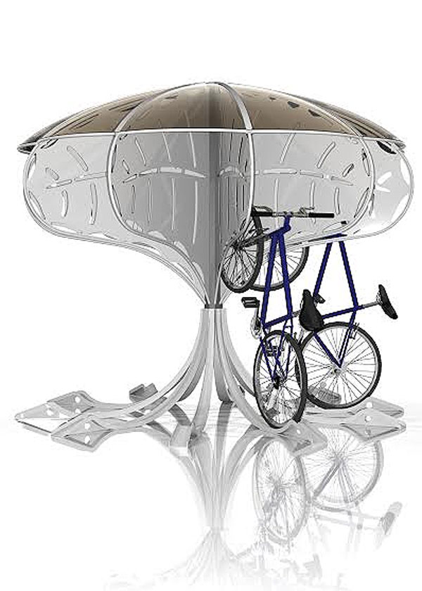 Abri vélo design forme champignon.