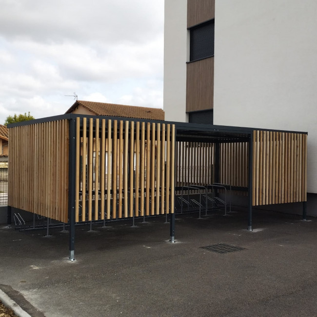 De nombreux accessoires et équipements complémentaires spécialement adaptés à ce module sont disponibles (rampe pour chargeurs de vélos électriques, éclairages, badgeuse ou digicode électriques, panneaux signalétiques lumineux, etc...)