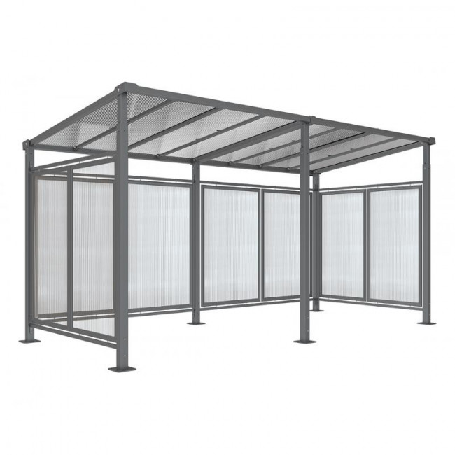 Notre abri cycles fixation platine intègre une couverture en polycarbonate alvéolaire de 10 mm d'épaisseur.