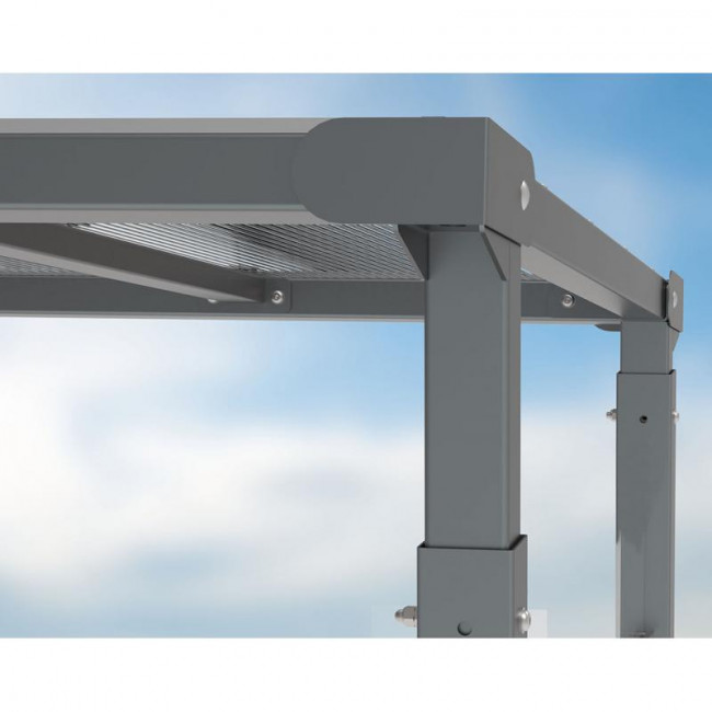Notre abri cycles sur platine repose sur une ossature en acier de section 80 x 80 mm. Vous profitez d'une solidité face aux contraintes d'usage intensif.