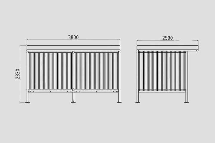 Dimensions (L x P x H): 3,8 x 2,5 x 2,33 m Capacité : de 8 à 10 vélos