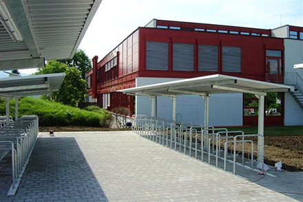 Sa toiture bac acier ou translucide en méthacrylate protège efficacement les vélos et motos contre les intempéries.