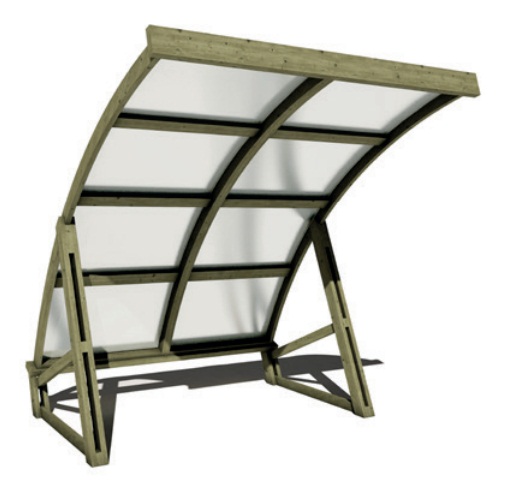 Cet abri à vélos est composé d'une structure en bois pin traité classe IV.