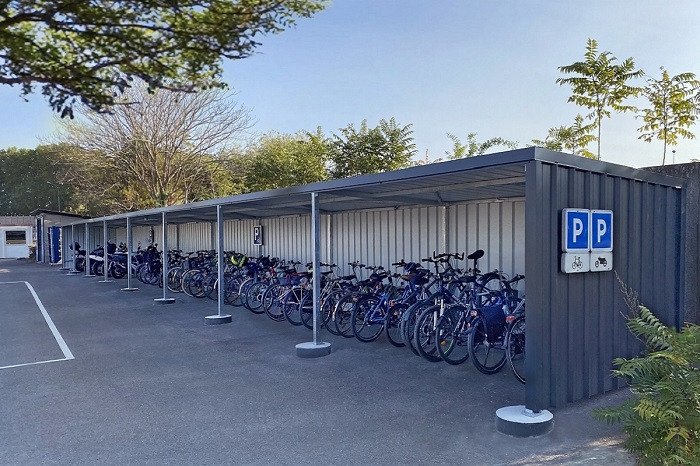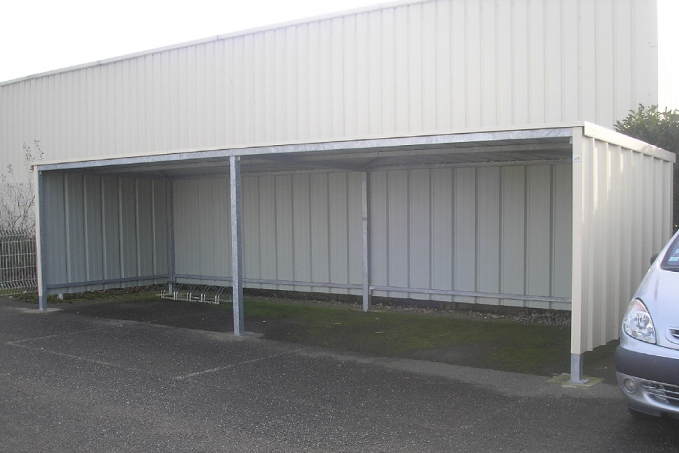 Cet abri 2 roues ouvert est utilisé dans les collectivités pour abriter en toute sécurité les motos et les vélos des professionnels et des habitants.
