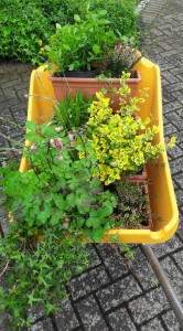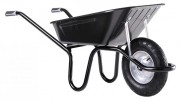 Cette brouette possède une caisse polypro jaune 110 L, souple, solide, résistante aux chocs et aux intempéries.
