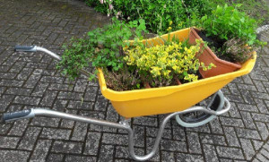 outil de jardin conçu pour transporter de la terre ou des gravats.