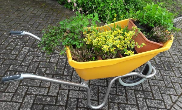Cette brouette est dotée d’encoches sur les bords pour le transport d’outils longs (rateau, pelle...).