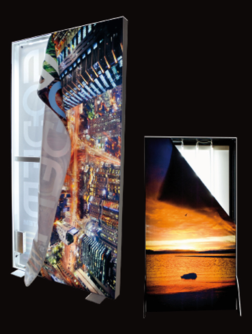 - Intégrée dans nos cadres autoportants recto-verso, elle diffuse une lumière uniforme sur les 2 faces.