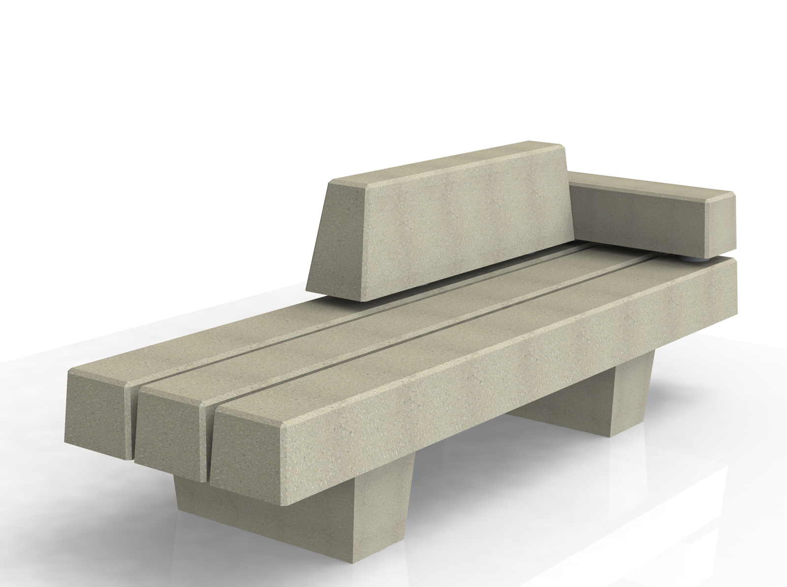 Ce banc en béton 3 assises est auto stable avec un aspect sablé ton pierre.