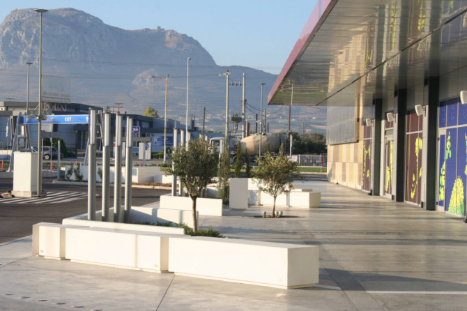 2 bancs urbain en béton (3275-11741791) longueur 2000mm couleur ocre.