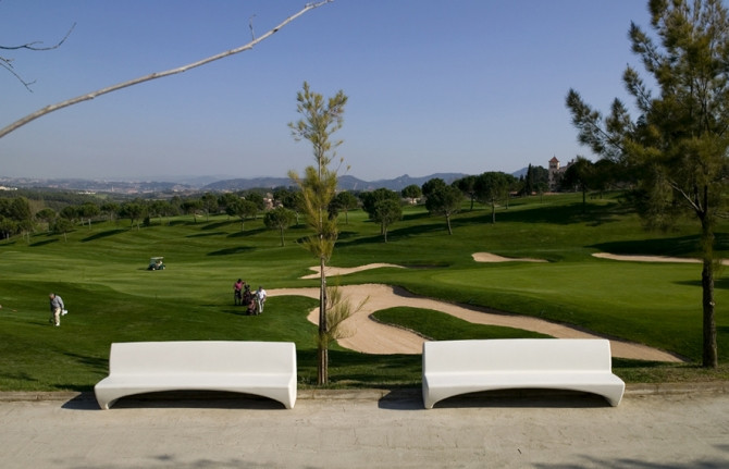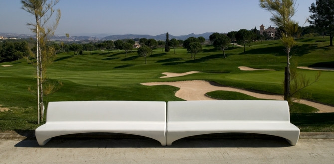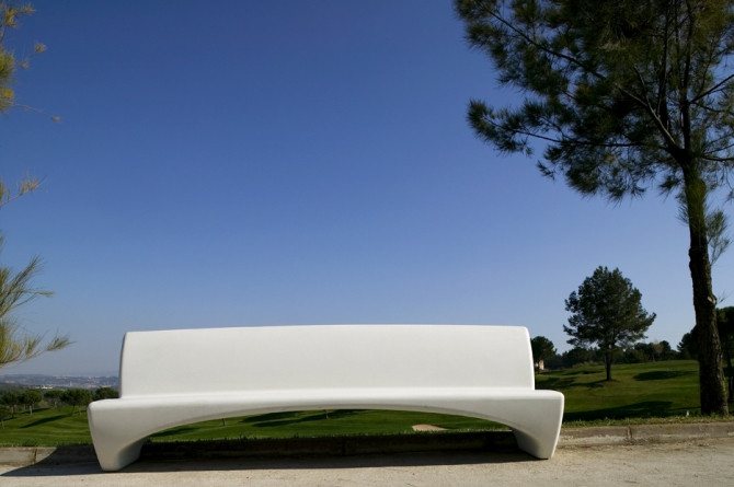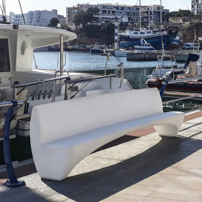 L'inclinaison du siège canalise l'eau vers les côtés, ce qui facilite l'entretien et la conservation du banc.