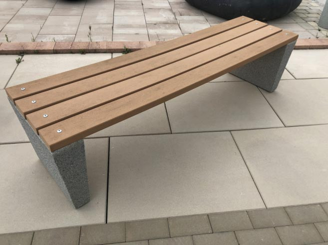 3 bancs ARECA béton clair et bois, y compris fondation et fixation.