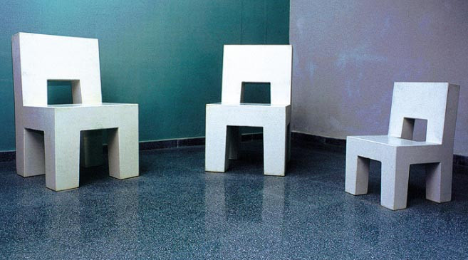 Le design des deux chaises est basé sur l'interprétation de la chaise élémentaire avec des lignes pures, facilement reconnaissables.