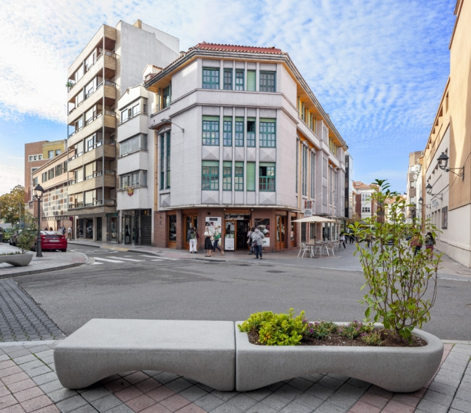 Deux éléments, un pour s'asseoir et l'autre pour accueillir des compositions florales, il apporte des couleurs à l'espace qu'il intègre