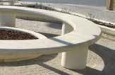 Le banc sinueux en béton est réalisé entièrement en béton classique associé à du fer.