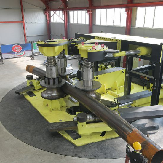 - Les rouleaux de flexion latérale se déplacent sur un axe rectiligne réduisant l’espace entre eux