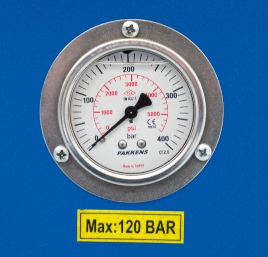 La cintreuse à galets dispose d’un manomètre de série, de rouleaux d'appuis ainsi que d’un socle.