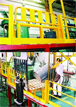 La barrière écluse de sécurité est un organe de sécurité et fait office de garde corps, est à associer à un moyen de manutention (chariot élévateur, palan, etc...) afin d'obtenir une solution d'accès :