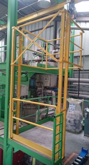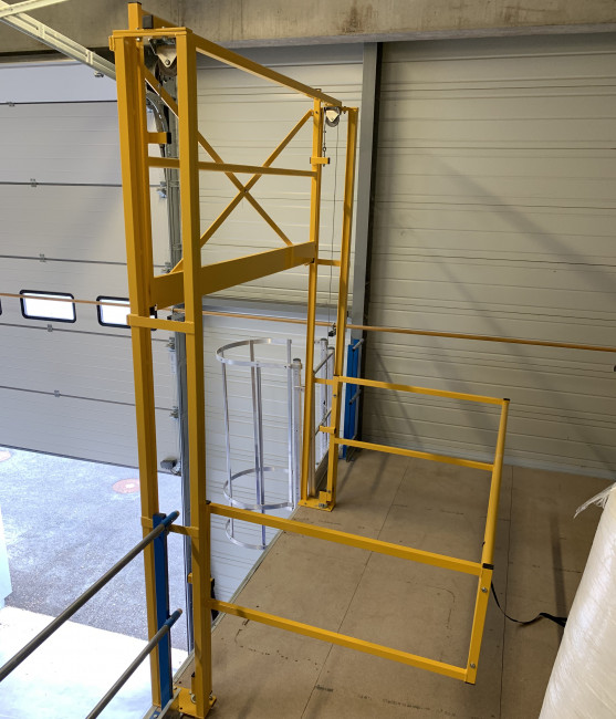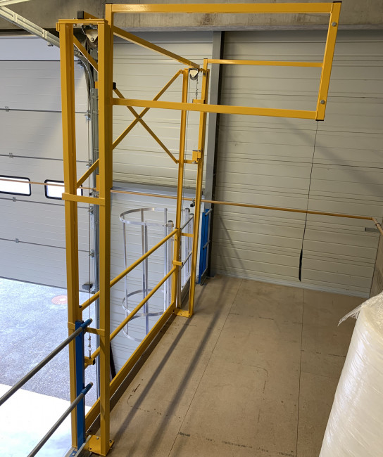 La barrière écluse coulissante verticale type SG4 est un équipement industriel constituant un sas de sécurité lors d'opérations de manutention de palettes entre différents niveaux.