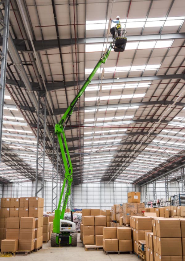 La nacelle élévatrice automotrice à flèche volante est conçue pour effectuer des interventions rapides et précises à une hauteur jusqu'à 17 m.