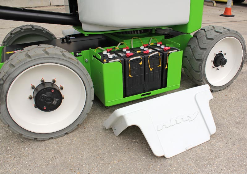 - Les pneus non marquants disponibles en option optimisent parfaitement son utilisation à la fois à l'intérieur et à l'extérieur et font de la nacelle l'engin idéal pour les ouvrages industriels ou de maintenance.