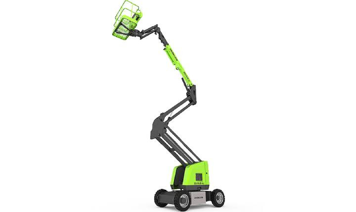 Son bras articulé électrique franchit les obstacles et son fonctionnement de nacelle électrique silencieuse convient autant à l’intérieur qu’en zone urbaine.