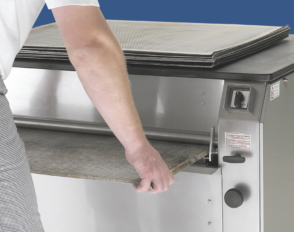 - La pression des rouleaux assure un nettoyage optimal en gardant la surface du plateau plat
