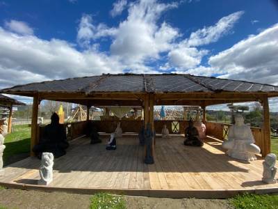 Nous utilisons du bambou naturel sélectionné pour sa résistance et son rendu visuel chaleureux. La tonnelle repose sur 6 piliers, dont 2 renforcés au centre, pour garantir une excellente stabilité. Les 4 barrières décoratives en bambou viennent structurer l’espace tout en ajoutant une finition soignée.