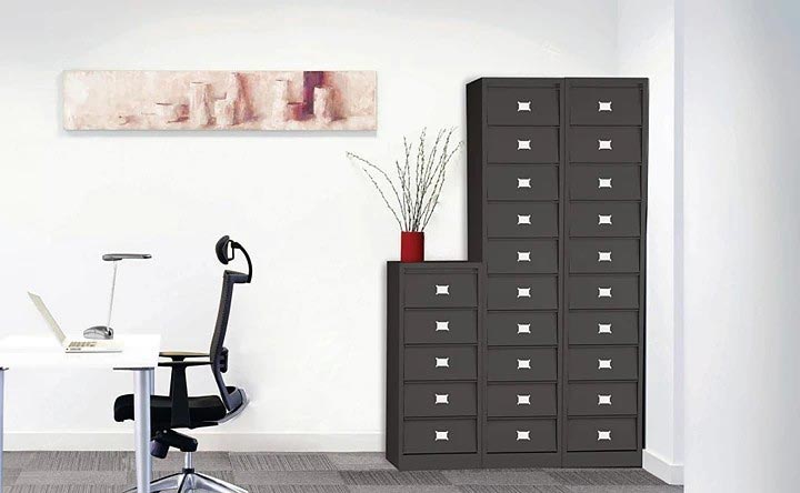 Vous pouvez assortir ce meuble de rangement à vos armoires de bureau métalliques, caissons et autres meubles de classement.