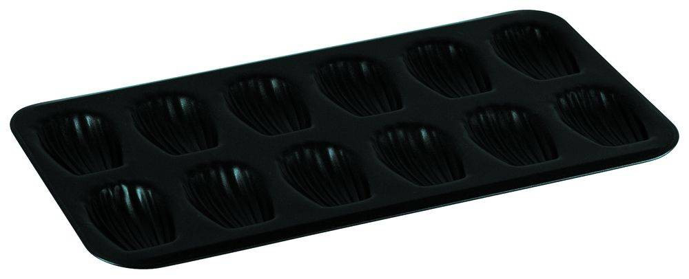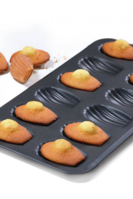 Cette plaque de 12 madeleines permet la cuisson de 12 madeleines dorées à l'extérieur et moelleuses à l'intérieur.