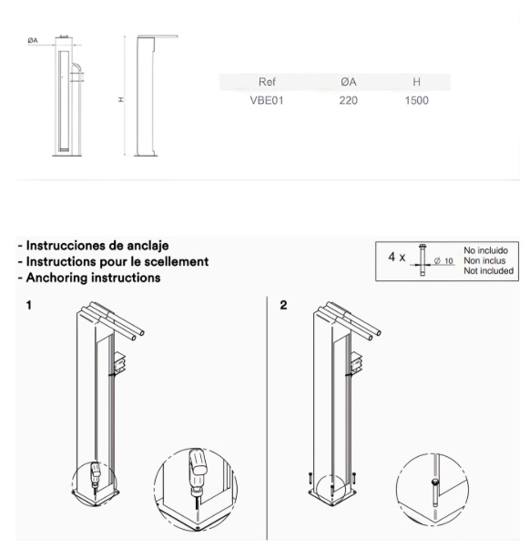 Avec une hauteur de 1500 mm et plaque de scellement, elle assure une stabilité parfaite et une installation durable.