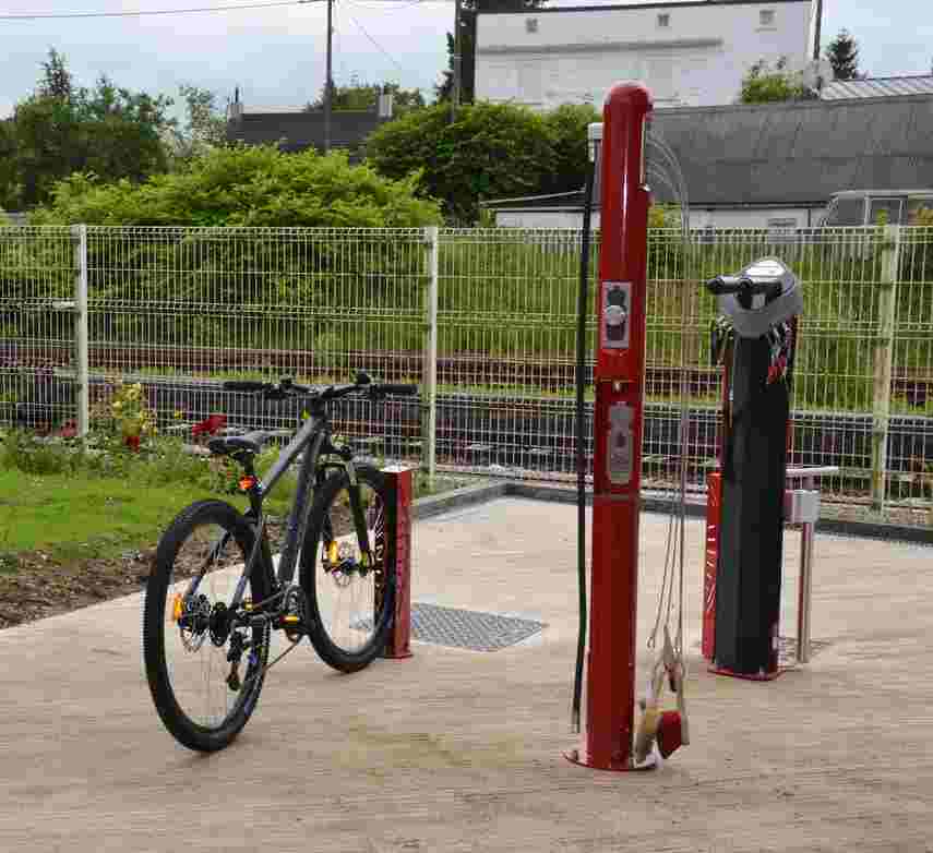 La borne de lavage vélo avec fontaine à eau est la solution idéale pour offrir aux cyclistes un espace complet d’entretien vélo sur les :