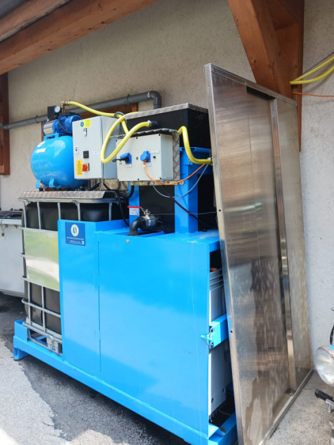 - 1 cuve IBC 1000L pour récupérer les eaux de lavage