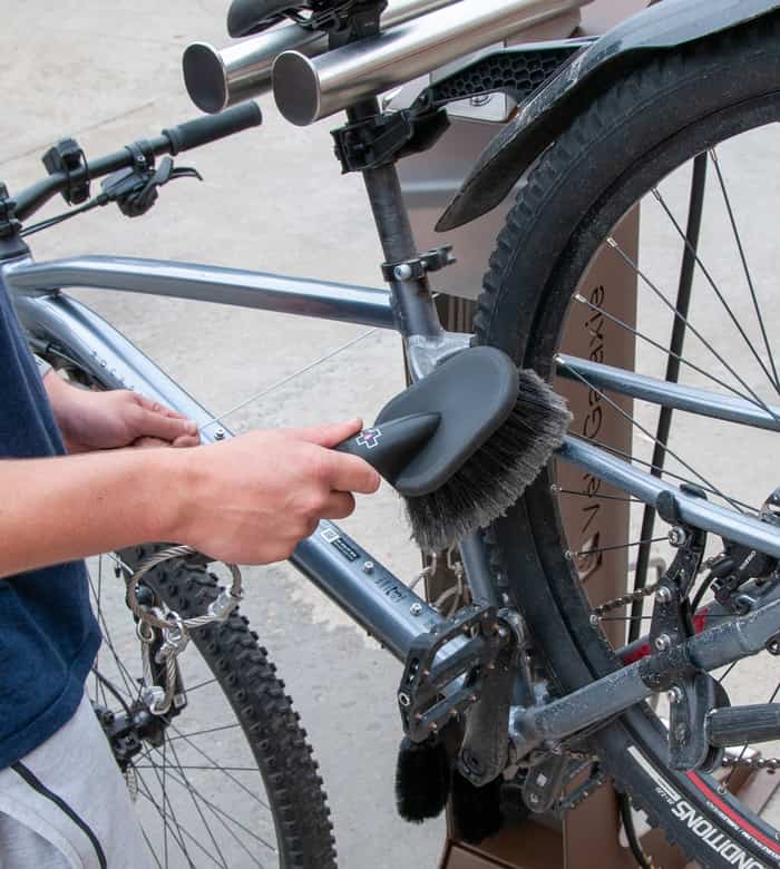 Nettoyage complet grâce aux 5 brosses dédiées (rayons, chaîne, roues, cadre…)