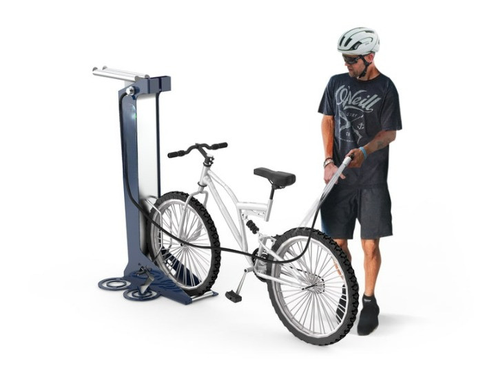 Cette station lavage vélo et fontaine à eau permet le nettoyage ou le pré-nettoyage manuel d'un vélo.