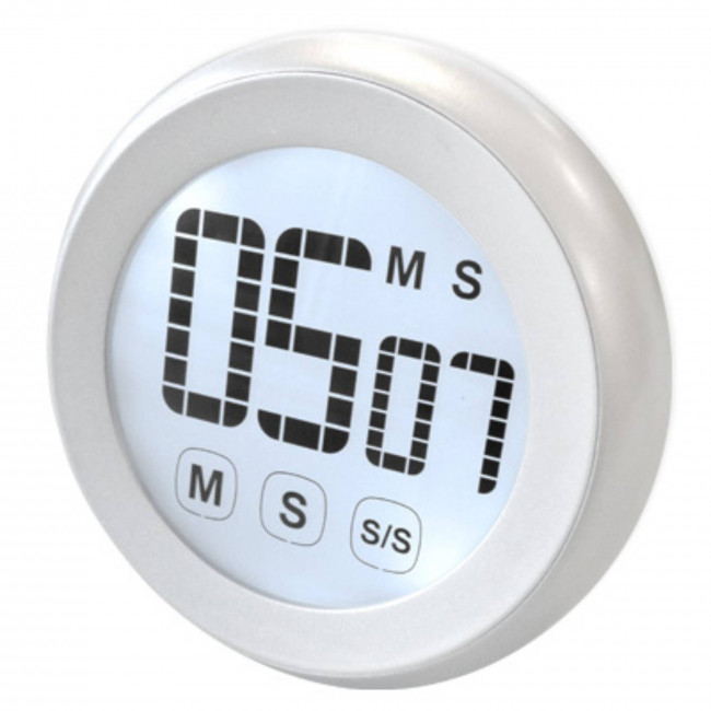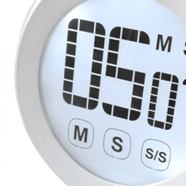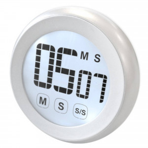 Ce minuteur digital rond de cuisine avec écran tactile est idéal pour programmer des compte à rebours de 59 secondes à 99 minutes.