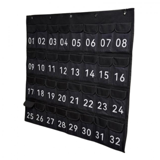 L’Araphone Wall 32 est un panneau mural conçu pour organiser et sécuriser jusqu’à 32 téléphones portables, chacun rangé dans une pochette individuelle anti-ondes.