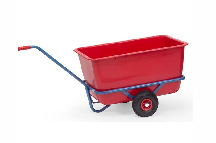 Notre char à bras léger avec cuvette est fabriqué en tube et profilé d'acier soudés.