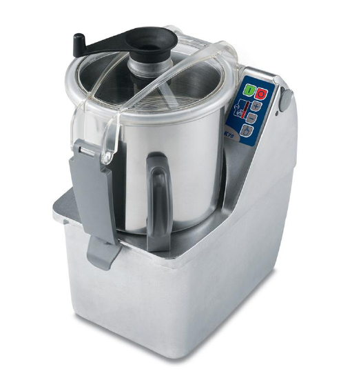 prix pour 1 cuter 7 litres Modèle 2 vitesses de 1500 et 3000 tours / minute. Bloc moteur triphasé métallique puissance 1300 W, commande à impulsion. Dispositif de sens de rotation inverse du couteau. Sécurité magnétique et frein moteur. Couteau tout inox à lame lisses démontables. Cuve inox de 7 litres avec couvercle transparent permettant l’adjonction d’ingrédients en cours d’utilisation. Livré avec couteau lisse et couteau cranté.