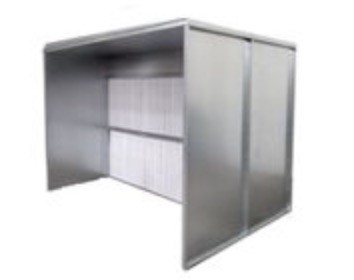 Le mur filtrant sec avec prolongement en tôle permet d'aspirer et épurer les particules relatives aux actions de peinture et vernissage, conformément à la législation en vigueur en matière de santé et de sécurité.