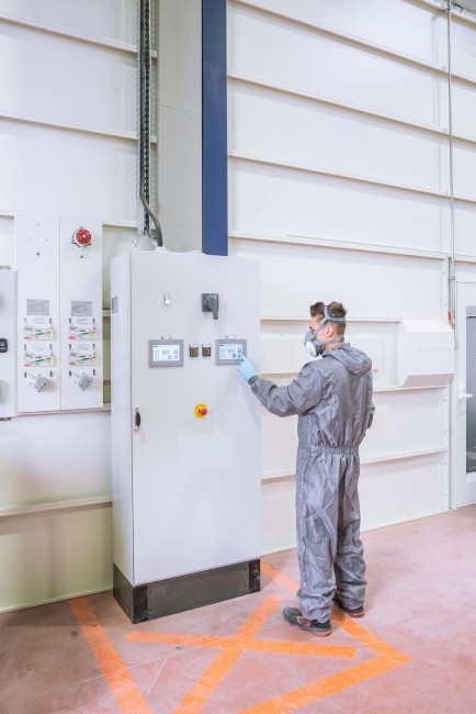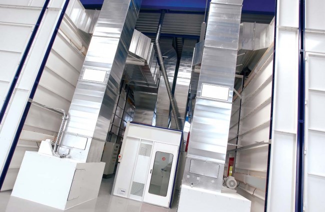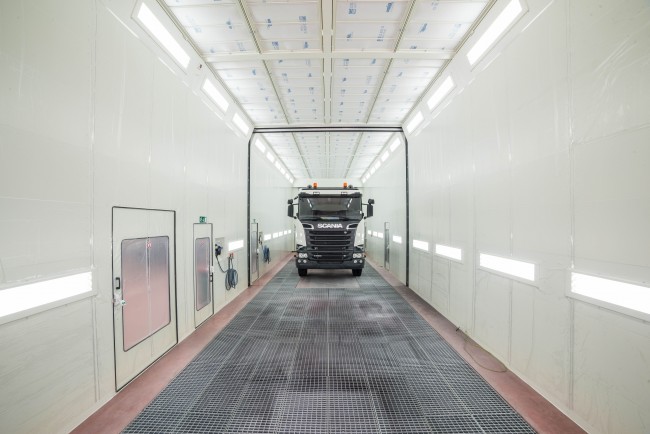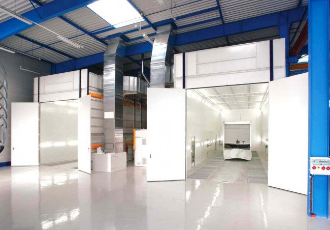 Cabine de peinture destinée à l'application peinture sur véhicules Poids Lourd (P.L.) et grand volume (G.V.) en carrosserie automobile (camions, bus, containers tous types de pièces détachées PL…).