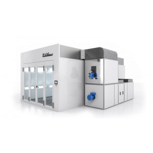 Cette cabine de peinture économe convient pour la mise en peinture des véhicules.