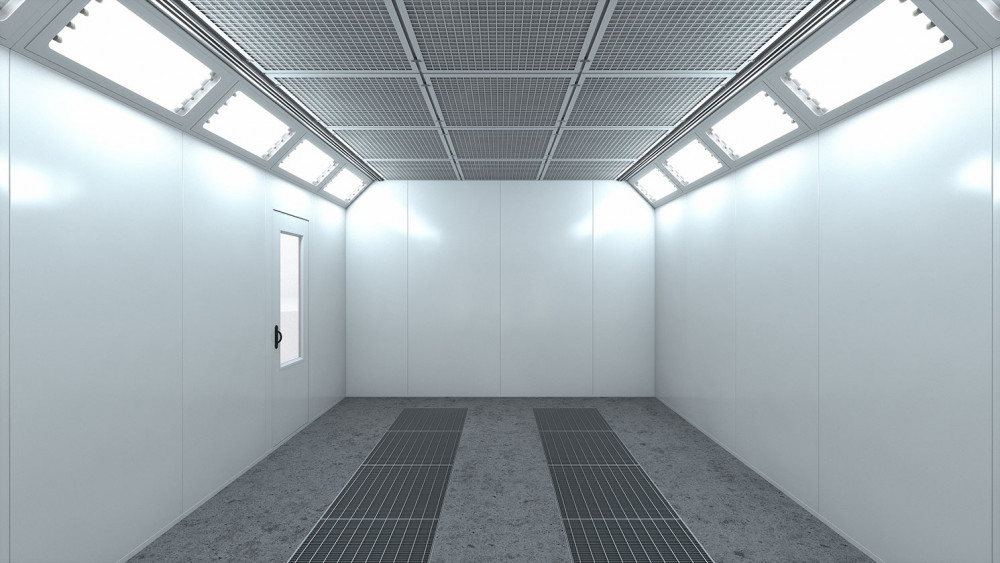 Cette cabine de peinture automobile permet de réaliser toutes les applications de peinture nécessaires en carrosserie.
