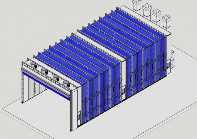 Nous vous proposons une cabine de peinture rétractable avec déploiement motorisé sans chauffage