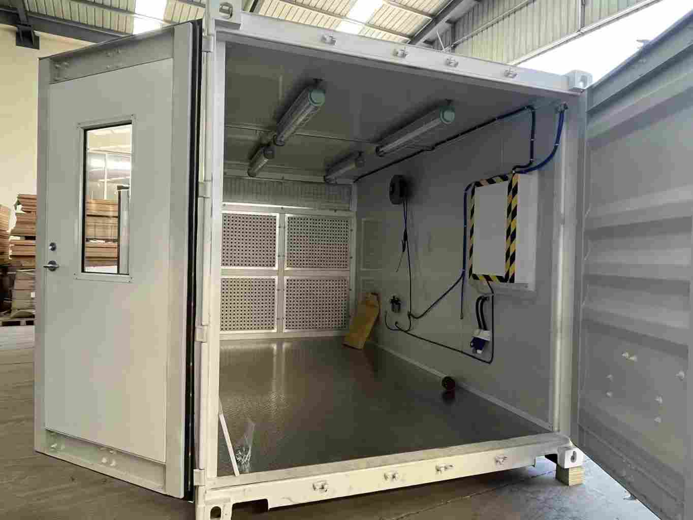 Grâce à son système de ventilation performante, de filtration de l’air, à son éclairage puissant et à sa structure étanche, notre cabine de peinture conteneurisée garantit une application homogène, sans poussière, avec une excellente qualité de finition.