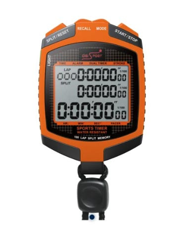 Ce chronomètre 100 mémoires est étanche à l'eau 3 ATM et ne coule pas.