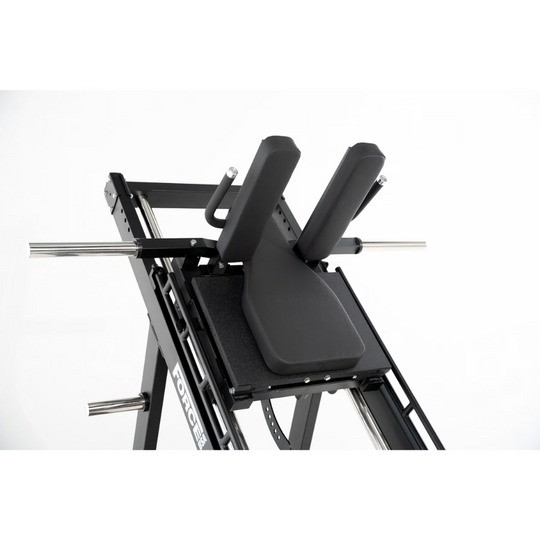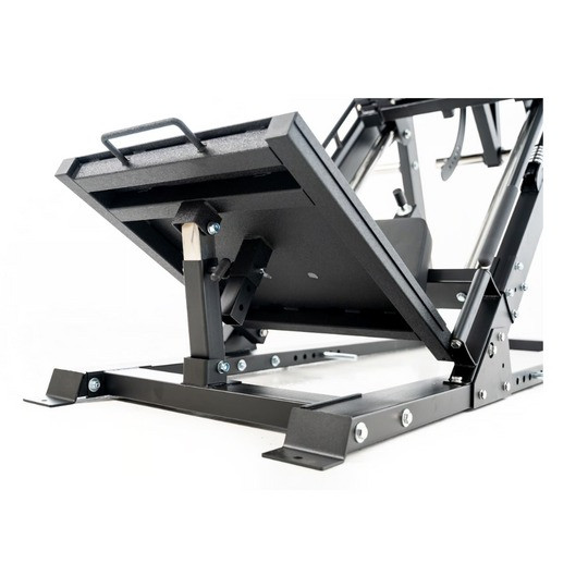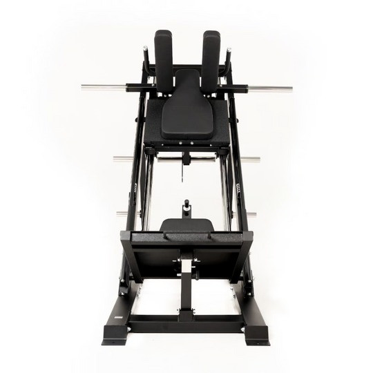 Cette presse à cuisses et hack est un équipement de musculation qui vous permet de réaliser deux exercices différents pour travailler les muscles des jambes.