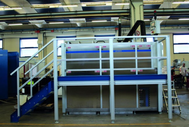 Cette machine de nettoyage ultrason dispose d'une cuve d'ébullition pour la phase vapeur et d'une armoire électrique avec automate pour le contrôle des températures.