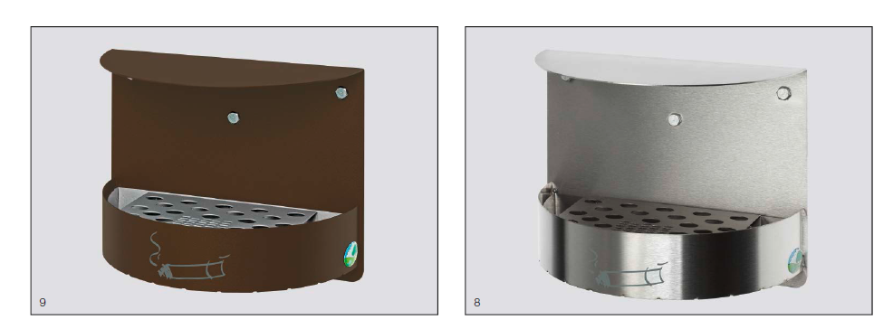 cendrier mural avec toit, destiné aux jardins, terrasses ou salle de pauses dans les sociétés.