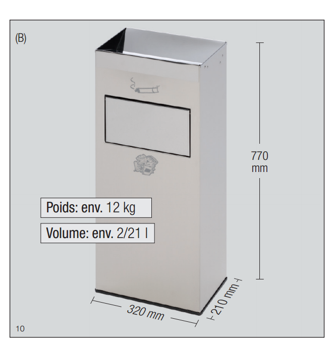 Ce cendrier poubelle inox brossé est conçu spécialement pour les jardins des sociétés, les espaces fumeurs...